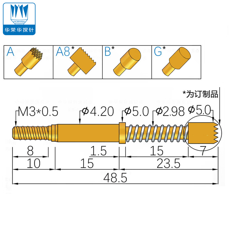 這兩種探針設計有特定的工作行程和彈簧力,使其能夠應對高達50A或更高的持續電流。這些探針的結構設計通常包含高質量材料,如鍍金的針桿和針管,以提高導電性能和耐腐蝕性,確保長期穩定和可靠的測試結果3。