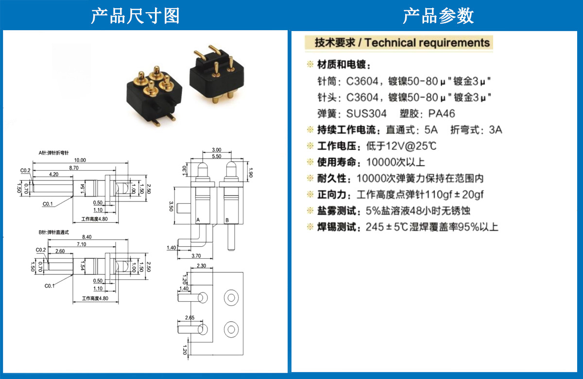 產品介紹:這個針通常用于智能手表,藍牙耳機上的有充電的功能,但是探針總體來說還是測試的