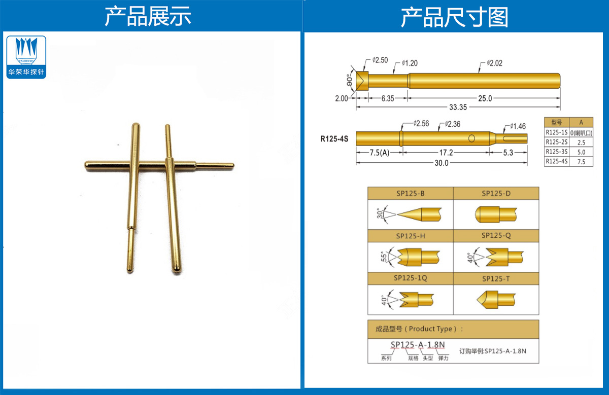 產品簡介:SP125探針、2.02mm測試針、總長33.35mm、彈簧針、測試針、頂針